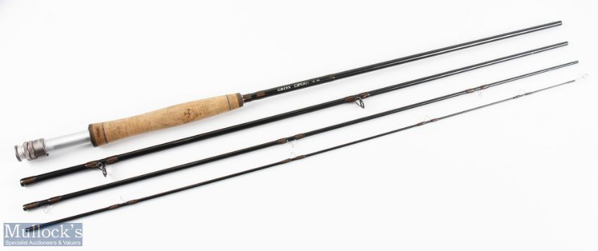 Greys Alnwick GRXi+ carbon fly rod 9' 4pc, line 6#, alloy double uplocking reel seat, lined stripping rings, dot alignment sections, very light use, in original sectioned Cordura tube