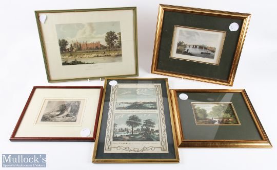 A collection of Fishing Engraving Prints and pictures - to include a Carp Pike Perch 1836, Fishing by Staines Bridge, Eton College, River Wandle, Wandsworth Surrey View with Fishermen, a small fishing print all framed under glass - the largest is 33cm x 42cm (5)