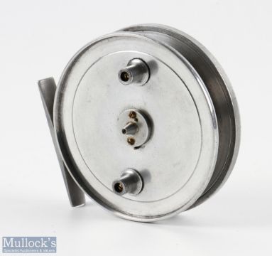 Unnamed 4.25" narrow drum centre pin reel all alloy finish, solid construction, twin handle, quick release spool, on/off check to reverse, runs smooth, G overall