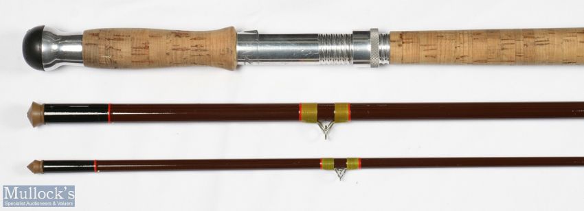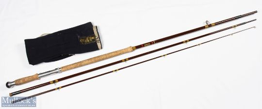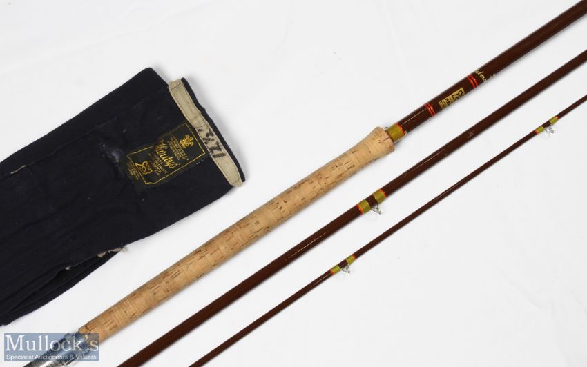 Hardy Alnwick salmon fly hollow glass fly rod 12' 6" 3pc line 9#, 24" handle with alloy down locking reel seat, rod agate butt ring, original cloth bag, light use