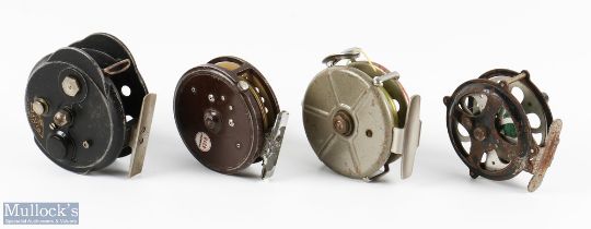 Bargain basement collection of small fly reels: Olympic 4310 runs well; unnamed skeleton Gyrex; unnamed metal reel. All showing signs of wear, in need of TLC (4)