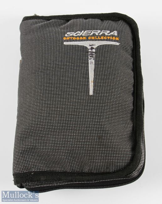 Scierra Outdoor collection zipped wallet containing - 6 salmon lines, various densities, and 3 Scierra salmon Polly leaders