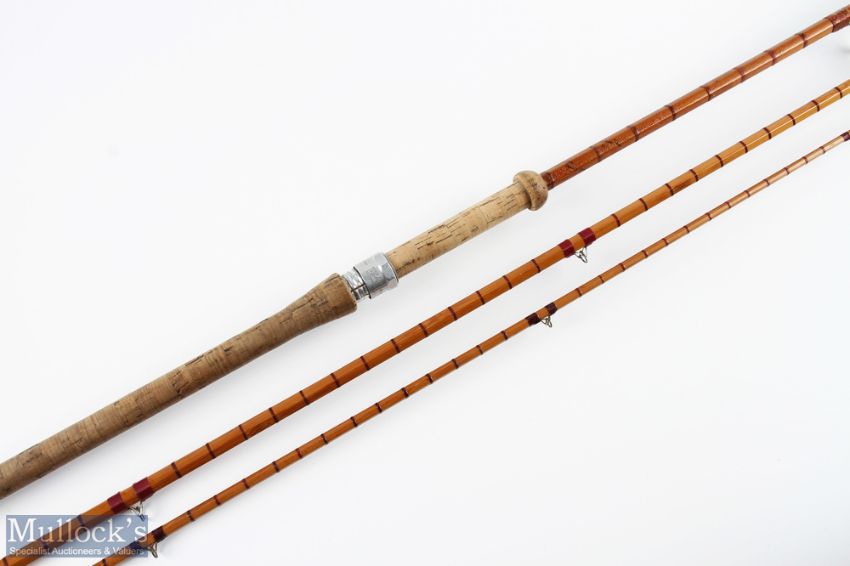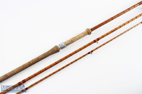 Hardy Alnwick "The Salmon Rod" palakona split cane fly, worm or shrimp rod E62542, 12' 6" 2pc (tip 2" short), 28" mushroom handle, alloy sliding reel fittings, agate lied butt/tip ring, stud lock joints, cloth bag