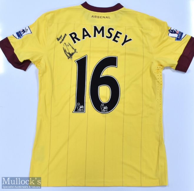 Arsenal 2010/11 (Signed) Ramsey No 16 away football shirt autographed to the rear, Premier League badges to sleeves, Nike/Emirates, short sleeve, size L