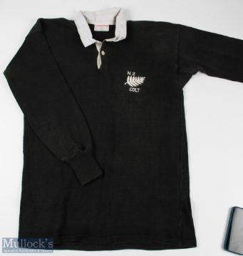 1980s New Zealand Colts Match worn Rugby Jersey: Slightly worn (from a few games?), traditional black jersey, silver fern & COLTS motif, Canterbury make, XOS, G/VG