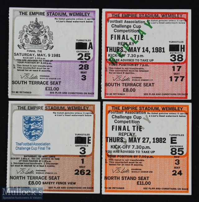 Tickets: 1981 + replay, 1982 + replay FAC final match tickets; good. (4)