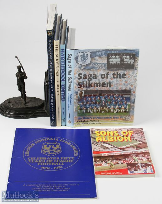 Selection of Football Books (6) to include The History of Whitton Albion 1887 to 1996 softback by George Haspell, The Official Encyclopedia of Tottenham Hotspur SB by Tony Matthews, Saga of the Silkmen HB copy with DJ - History of Macclesfield Town by Graham Phythian, The Survivors, The Story of Rochdale HB copy with DJ by Steven Philips, No 158/281 printed and The History of Hartlepool Utd by Ed Law