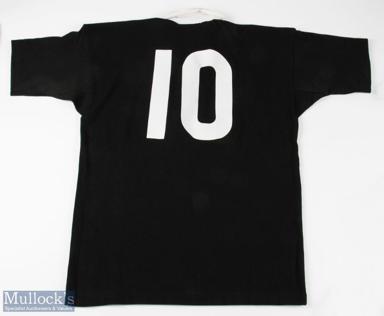 Rare 1996 All Black in SA Andrew Mehrtens' Kit (3): Donated by the player to the current vendor, photographic evidence, with his match worn jersey, Steinlager & All Black logos, short sleeved, plastic 10 ironed to reverse, Canterbury make & embroidered SA v NZ 1996 detail to sleeve too. From the first NZ series win & last long tour in SA; similarly to the shorts, and then the classic socks, black with two white hoops to turnovers. Magnificent 'full' lot