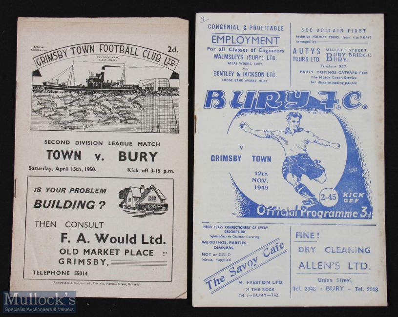 1949/50 Grimsby Town v Bury Div. 2 programme + return match at Bury 12 November 1949; fair. (2)