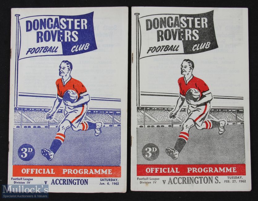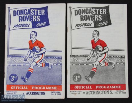 1961/62 Doncaster Rovers v Accrington Stanley Div. 4-6 January 1962 programme (match postponed); v Accrington Stanley programme 27 February 1962 match played; fair/good. (2)