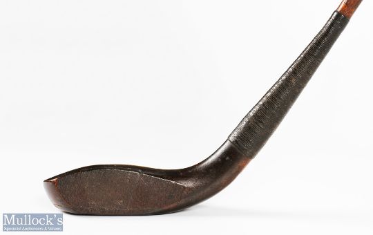 Fine T Dunn dark stained beech wood longnose play club c1885 - the elegant high crown head has the original central leather face insert - the limber shaft has extra whipping for firmness - still fitted with original hide grip with thick underlisting - very desirable club. Note: Golf Collection from "David Easby Estate"