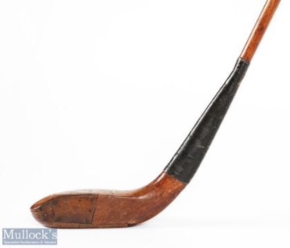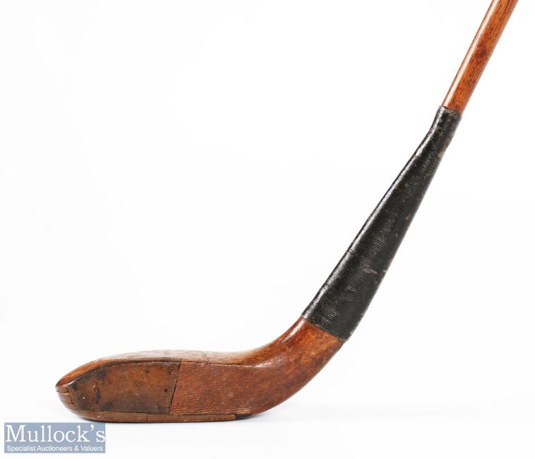 Auchterlonie St Andrews light stained dog wood broad head longnose driver c1890 - with half leather face insert, good hide grip with underlisting - overall 44" - in good sound order but has repairs to the sole insert Note: Golf Collection from "David Easby Estate"