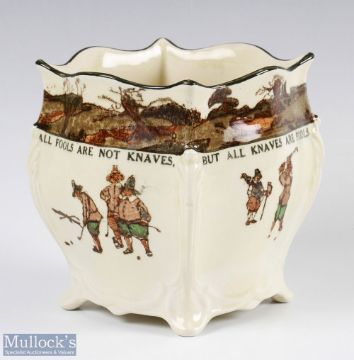 Royal Doulton Series Ware Charles Crombie Ceramic Vase square body with patterned edges with motto to body 'give losers leave to speak and winners to laugh, all fools are not knaves, but all knaves are fools', transferred backstamps to base D3395, height 12cm, few small hairlines to rim, overall fine crazing
