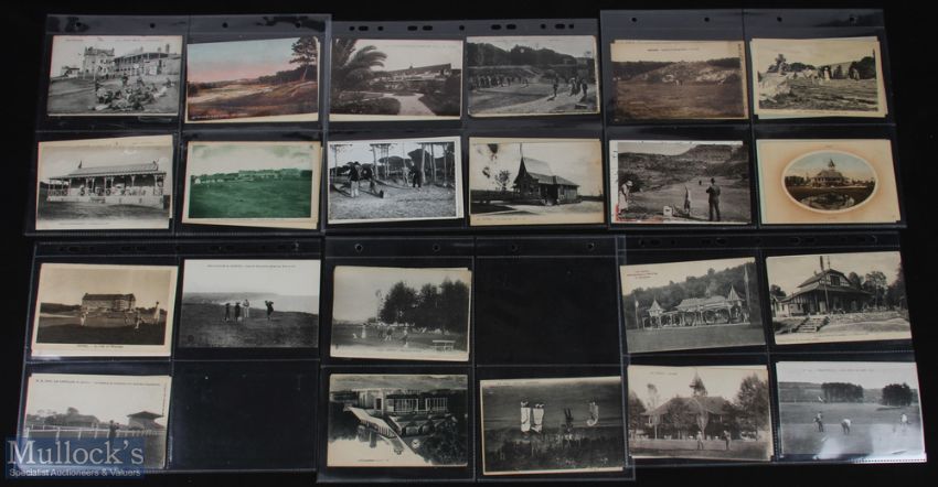 c1905-1950 French Golf Course Club Postcards Collection, a good selection of over 105 postcards most have been postally used and are French with a couple of European ones, also noted are printed postcards, a few Real photograph examples of Golf Hotel Le Touquet, Golf Pavilion Hague (#105)