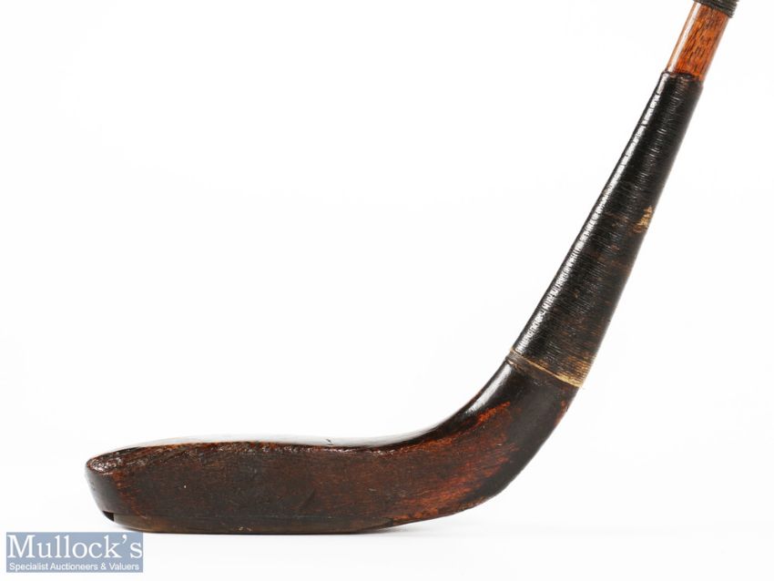 McEwan dark stained beech wood longnose putter c1885 c/w St Andrews bowed shaft and original full length hide grip with underlisting - note some wear to the toe end of the crown. Note: Golf Collection from "David Easby Estate"