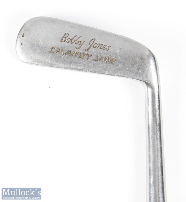 Late Spalding Calamity Jane wry neck putter showing the Bobby Jones name to the rear fitted with the typical 3 bands of whipping to the shaft