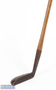 Brown Vardon patent metal headed putter showing the Gibson Star mark to the crown of the small mallet head fitted with full length hide grip