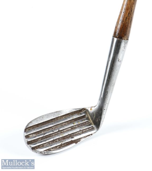 JP Cochrane & Co Edinburgh deep grooved back spin style mashie niblick - fitted with a good full length hide grip