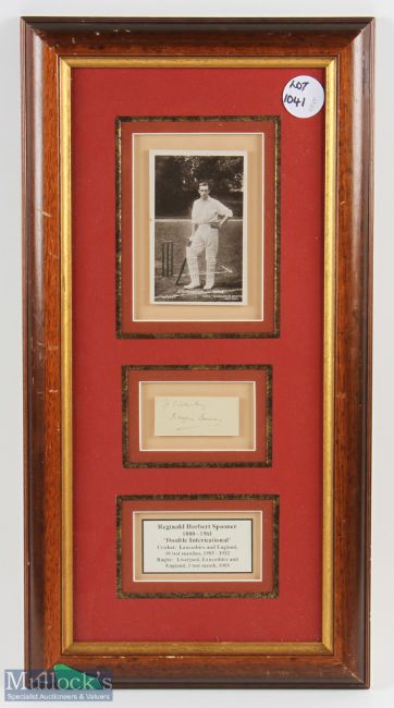 c1910 Reginald Herbert Spooner Cricket signature and postcards Lancaster, England and he also had one test for Rugby England 1903, framed and mounted under glass