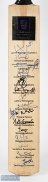 2014 ICC World Twenty20 Champions Signed Cricket Bat, with noted signatures of Lasith Malinga, Lahiru Thirimanne, Angelo Mathews, Seekkuge Prasanna