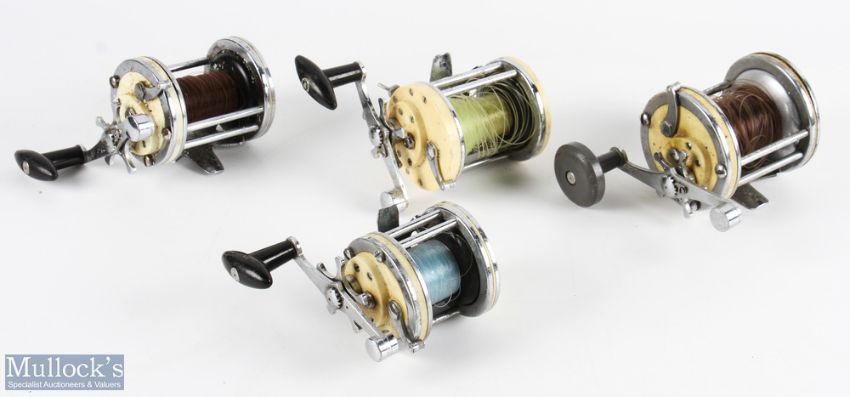 A collection of Mitchell multiplier reels, all working: 2x 600 Model One, with rod clamp; 1x 602 and 1x 624 - (all need a clean) (4)