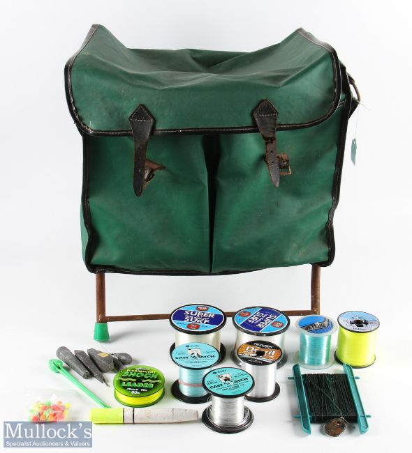 Efgeeco Major still framed plastic covered creel with spring seat, containing Penn Super Surf line 10lb/15lb; Shakespeare, Sufix, Sakuma and Rovex Mono opened
