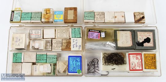 2x plastic cases with over 45 packs of mixed hooks by Allcocks, Drennan - many original sample boxes