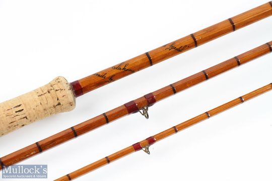 Hardy Alnwick "The Gold Medal" split cane palakona fly rod 11' 3pc, alloy uplocking reel seat, agate butt/tip rings, twist lock joints, looks very original, cloth bag
