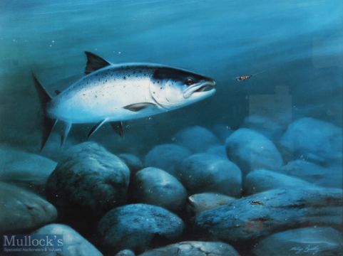 Melvyn Buckley Lord of The Pool Salmon Print signed edition, framed and mounted under glass - size #70cm x 88cm