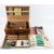 Unnamed scratch built fly tying case 16" x 10" x 6" single catch with carry handle, sectioned base with 'T' for vice, lift out tray sectioned lid, with a small selection of materials and tying guides