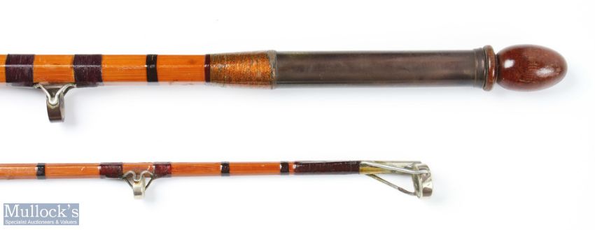 A scarce Hardy Alnwick Coquet palakona split cane sea rod No E91751 (1954) 7' 2pc, 24" handle with anodised double adjustable reel fittings, agate rings throughout with tulip tip, 4oz CW, in MCB, very original