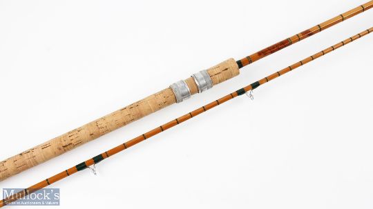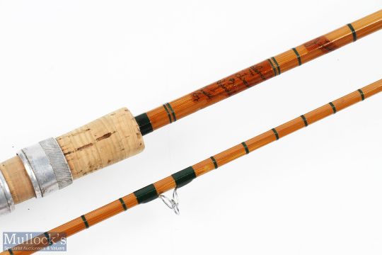 Aspinall & Son Redditch "The Dalesman" split cane pike rod 8' 2pc, 22" handle with alloy sliding reel fittings, clear agate butt/tip ring, looks refurbished, cloth bag