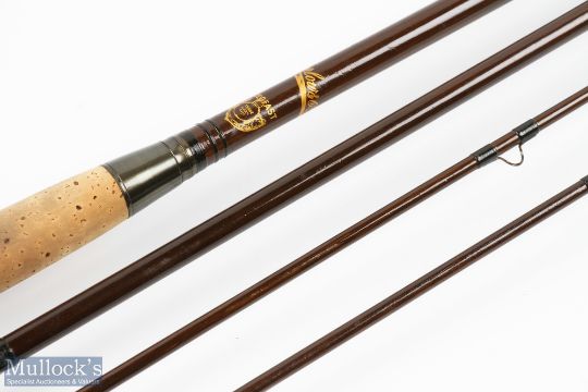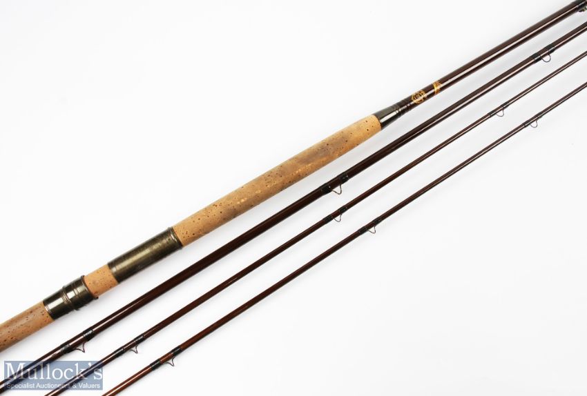 Farlows London Holdfast Logo greenheart salmon fly rod 12' 6" approx., 3pc with spare tip, 22" handle with brass sliding reel seat and collars, red agate butt/tip rings, looks very original, cloth bag
