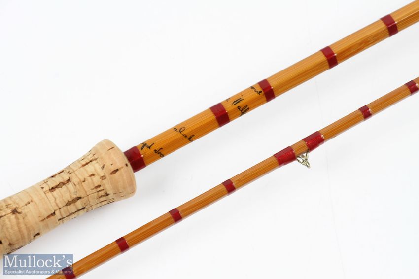 Hardy Alnwick "The Halford Knockabout" palakona split cane fly rod H3515 (c1955) 9' 6" 2pc alloy uplocking reel set with patent spear, stud lock joint with acorn protector, MCB, very good, may be a refurb