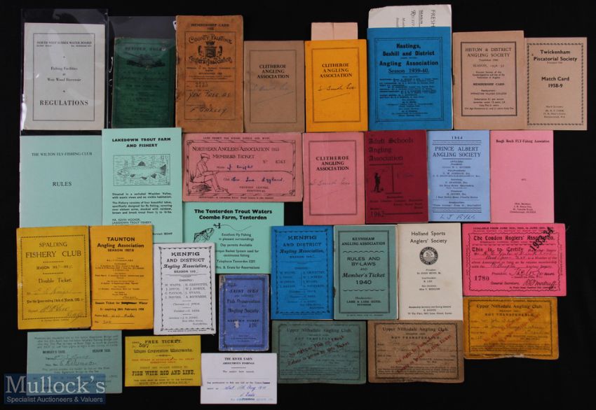 30x Assorted Angling Club Membership Booklets c1898 to 1960s inc Worcester, North West Sussex, River Earn, Saint Ives, County Palatine and others (30)