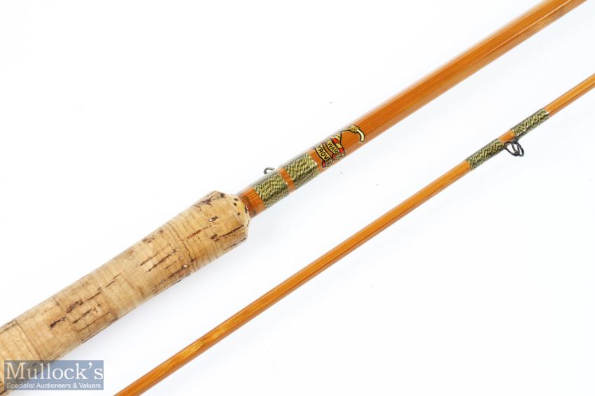 Millwards Fly Rover split cane fly rod 8208, 9' 3" 2pc, alloy uplocking reel seat, red agate lined butt ring, tidy, tatty cloth bag