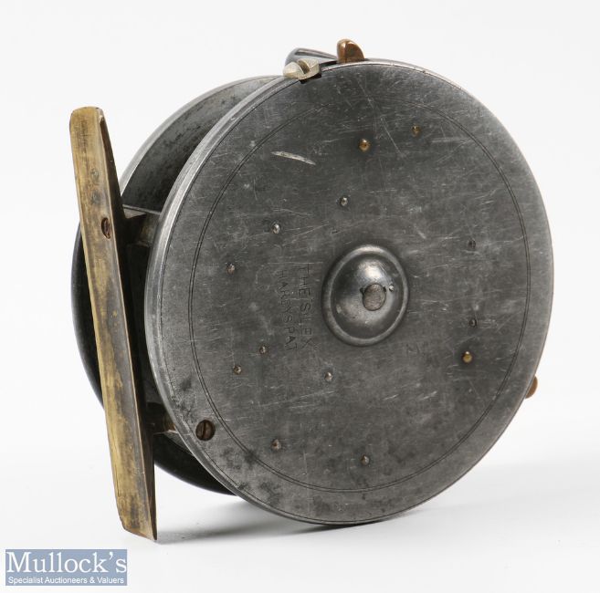 Hardy Patent 4.5" The Silex Narrow Drum Casting Reel early type with rim lever, twin ivorine handles, brass foot, runs smooth