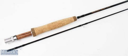 Malcolm Grey Alnwick carbon brook fly rod, 6' 2pc line.75# alloy uplocking reel seat with wood insert, lined butt ring, light use, in original Cordura tube