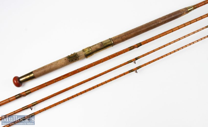 Hardy Alnwick "The Pennell" steel centred split cane salmon fly rod No 189.39 (1906) with Hardy patent rings, 14' 3pc with spare tip, 24" handle with brass sliding reel seat and collars, brass twist lock ferules, clear agate butt ring and red agate tip rings, cloth bag. Very original