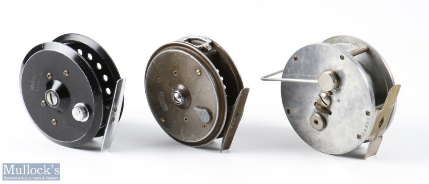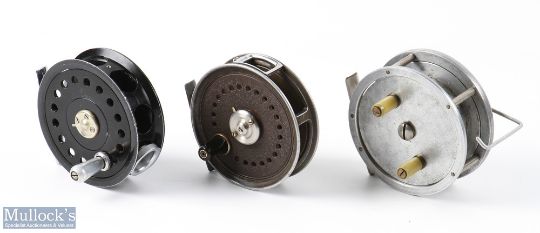 French 3.5" Reflex Alloy Salmon Fly Reel with rear adjuster, swinging line guide, twin cream handles, rear adjusters, stamped to rear 'Reflex' Bte SGDG France & Etranger Marq F Depose 32886, with Milwards 3.5" Flycraft in black and 3.5" Flymaster in grey (3)