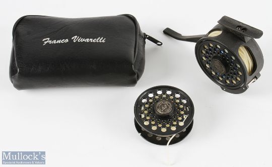 Franco Vivarelli carbon fibre Patent Pending Italy automatic fly reel with spare spool 3" spool, lever action, works very well, in MZC