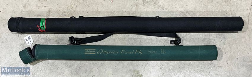 2 Empty Canvas Covered Rod Tubes, a maverick 103cm x 7cm, Shakespeare odyssey travel fly #83cm x 7cm, both with good zips and a shoulder strap