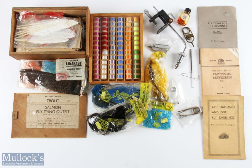 Veniard Fly Tying Kit and other accessories - including silks, tools, vise, booklets and materials with a boxed set of unused silks (qty)
