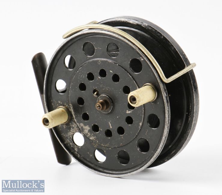 Farlows 4" Narrow Drum 'Utility' Centrepin Trotting / Casting Reel in black finish, twin cream handles, brass foot and rear check on/off, nickel line guide, runs smooth