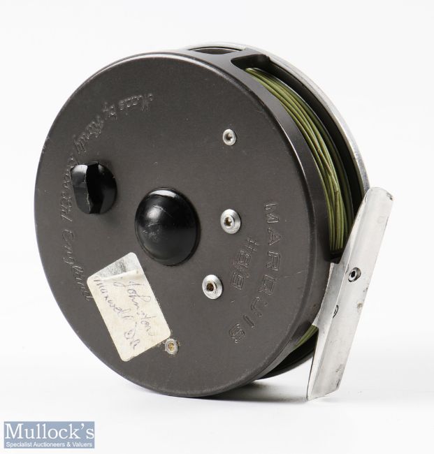 Hardy Marquis 8/9 alloy trout fly reel - 3 5/8" dia. smooth alloy foot - "U" shaped reversible line guide, good strong check c/w some backing line, usual rim wear, runs freely, in makers pouch