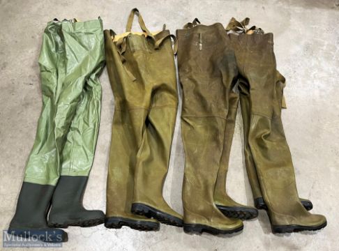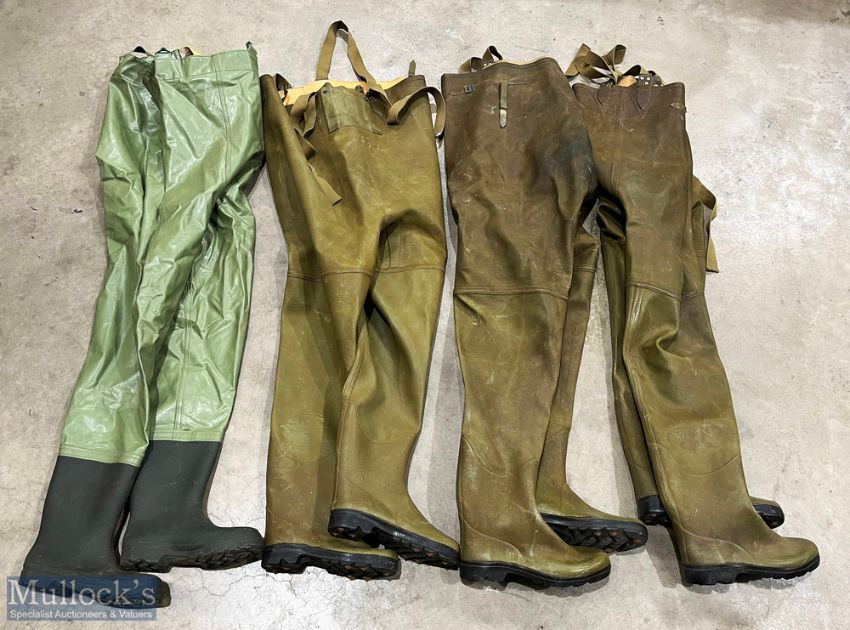 Le Chameau Mer Rubber Reinforced Waders, 3 pairs size 40, 42, 37 sized boots with studs, all in need of repair, plus a pair of Ocean waders with 42 (approx.) boots (2 boxes)