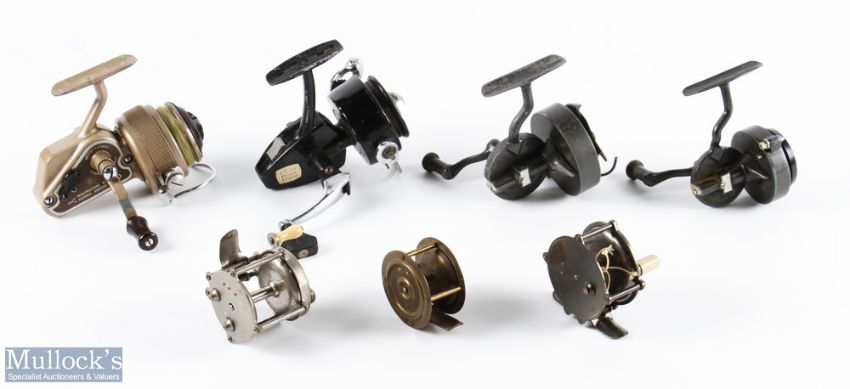 A collection of reels for spares or repair: 2x Hardy Hardex reels; Ambidex casting reel; Intrepid Prince Regent; 3x small unnamed centre pin reels (7)