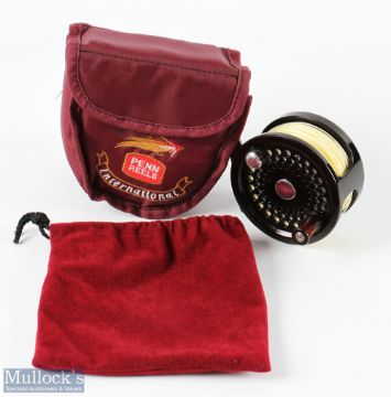 A fine Penn International USA C951012, 2.5 fly reel, 3 3/8" wide spool with counterbalanced handle, constant check, large rear tensioner in cloth bag and original Velcro pouch, very light use