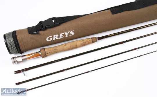 Grey's Alnwick XF2 Streamflex carbon fly rod nymphing 10' 4pc line 3#, double alloy uplocking reel seat with burr wood insert, lined butt ring, light use, original triangle Cordura tube