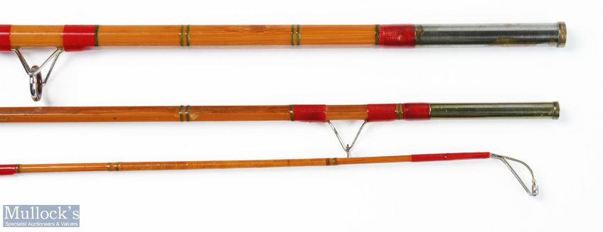Allcocks Record Breaker split cane float/trotting rod 11' 2pc 17" handle with alloy sliding reel fittings, red agate butt/tip, stand off rings, very tidy, cloth bag